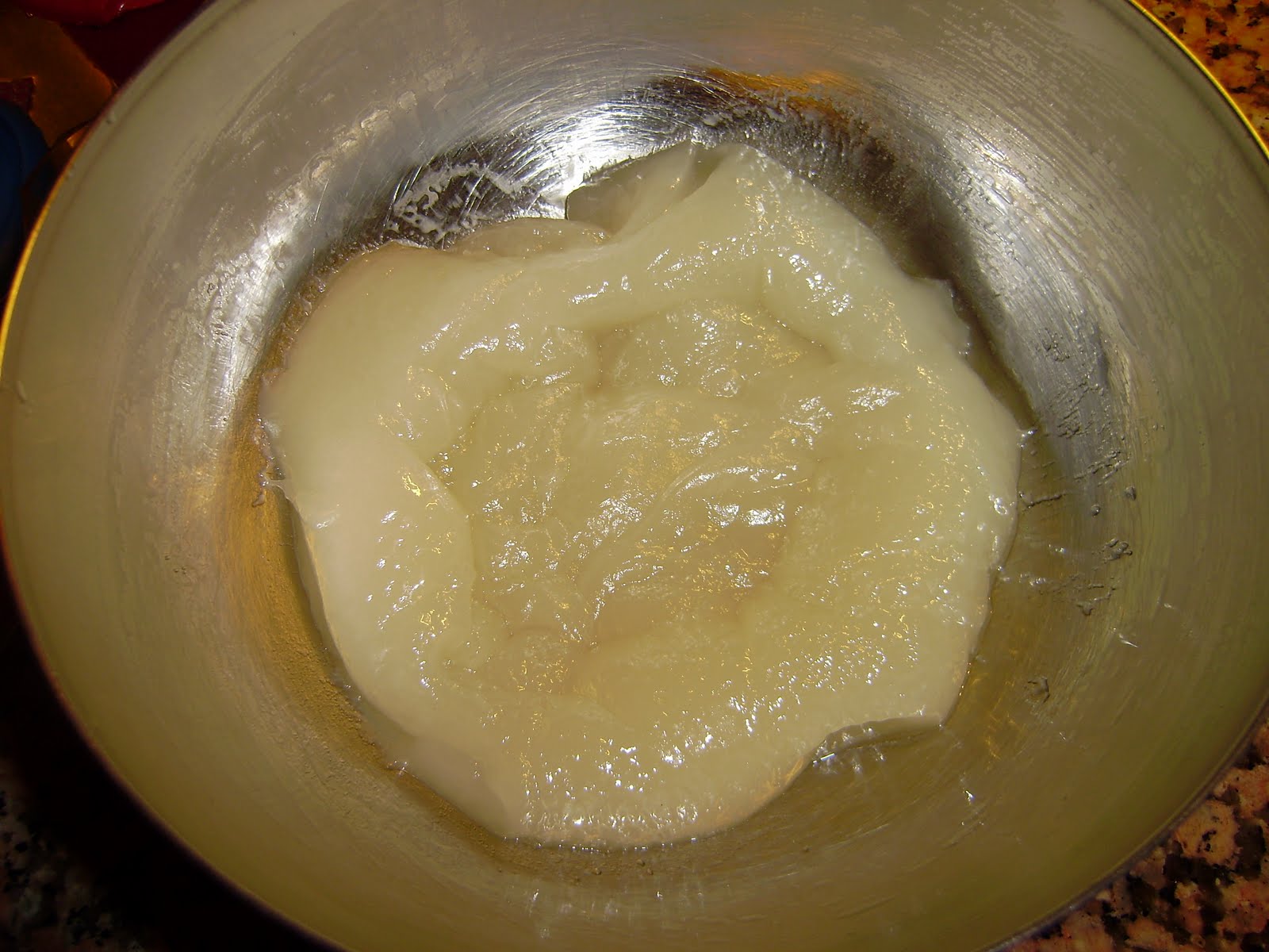 L'impasto per il daifuku è piuttosto semplice: basta miscelare della farina di riso glutinoso (glutinoso! o non riesce!) con acqua e zucchero.