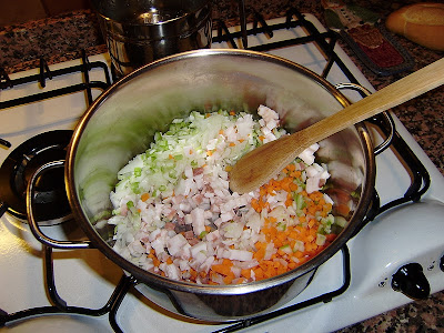 ..e vi soffriggo la pancetta, le carote, la cipolla ed il sedano.